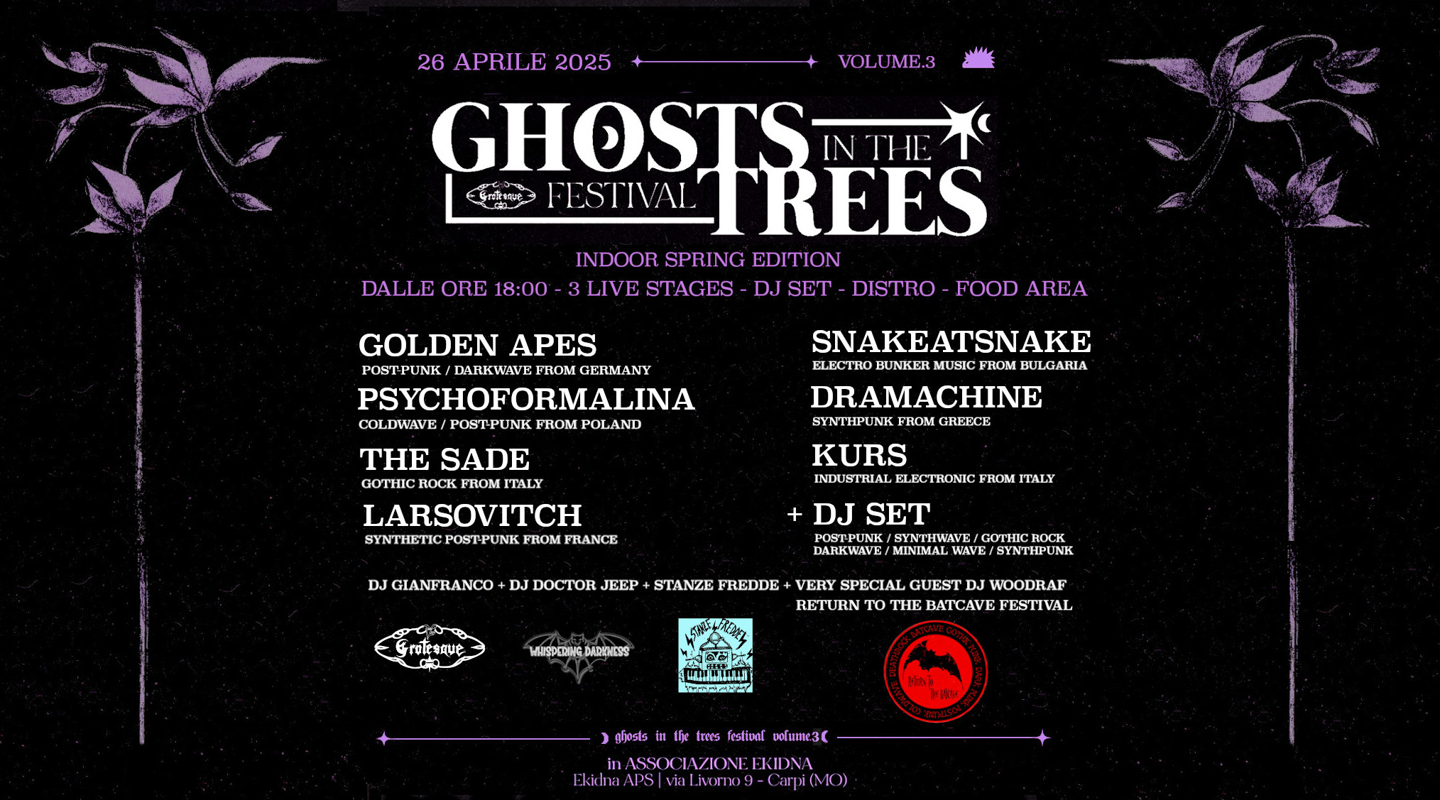 Qui di seguito locandina e dettagli del GHOSTS IN THE TREES festival Vol.3